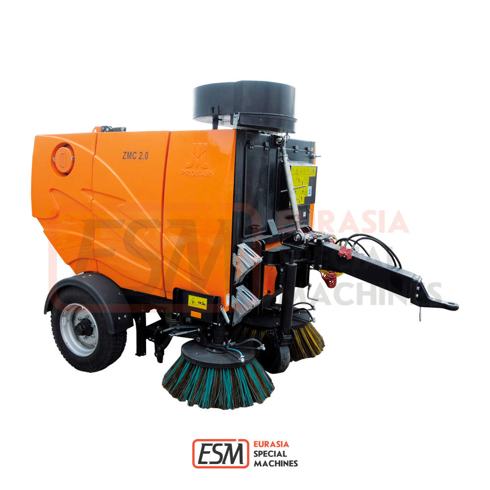 Подметально-уборочная машина PRONAR ZMC 2.0 - Прицепная вакуумная подметально-уборочная машина ZMC 2.0 создана для работы с тракторами мощностью от 60 л.с. и скоростью ВОМ 1000 об/мин. Спроектирована для содержания в чистоте автомобильных дорог, площадей, больших складских площадок и любых других территорий с твердым покрытием (брусчатка, асфальт, бетон). Подметально-уборочная машина ZMC 2.0 оснащена двумя дисковыми щетками, приводимыми в движение гидравликой, которые сметают мусор к центру машины и далее с помощью вакуума засасывает его в бункер вместимостью 2,1 м3, размещенный в задней части машины. Система орошения, состоящая из насоса, бака для воды (ёмкость 240л) и форсунок, позволяет эффективно препятствовать образованию пыли во время работы. Управление машиной полностью автоматизировано, обслуживание всех функций подметально-уборочной машины, включая опустошение бункера осуществляется электрически с помощью пульта. Гидравлически поворотное дышло позволяет подметально-уборочной машине передвигаться вплотную к бордюру.