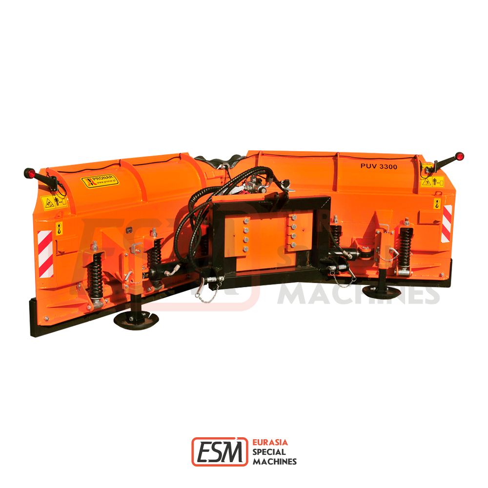 Отвал снегоуборочный PRONAR PUV - 3000 - Универсальный снегоотвал предназначены для уборки снега с поверхности дорог, площадей, стоянок, на территории и вокруг объектов а также других твёрдых поверхностей дорог и тротуаров. Снегоотвалы, работающие в четырёх рабочих положениях, (уборка снега направо, налево или вперед) их можно также установить таким образом, чтобы они собирали снег в центр или отбрасывали его симметрично в стороны (направление стрелки). Снегоотвалы могут быть оснащены резиновым или металлическим ножи из износостойкой стали Hardox . Уборка поверхностей от снега становится проще благодаря подвеске, копирующей рельеф местности. Каждый из отвалов имеет разблокировочную систему, которая при контакте с препятствие отталкивает его, а применение „плавающего” положения подвески позволяет в то же самое время произвести подъем всей системы. После объезда препятствия под действием пружин система возвращается в нужное положение, а специальные защелки блокируют лемех.