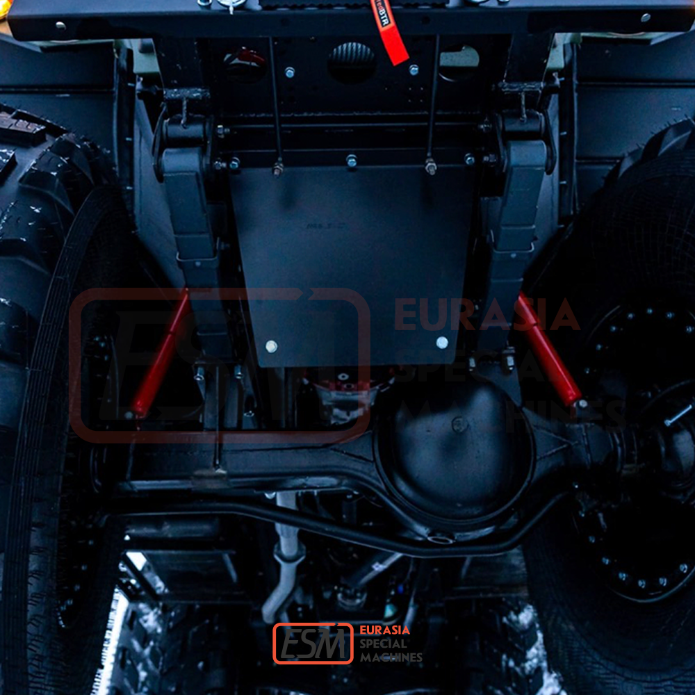 | Передний, средний и задний ведущие мосты | одноступенчатые, с дифференциалом повышенного трения. Шарниры поворотных кулаков переднего моста шариковые равных угловых скоростей | ||