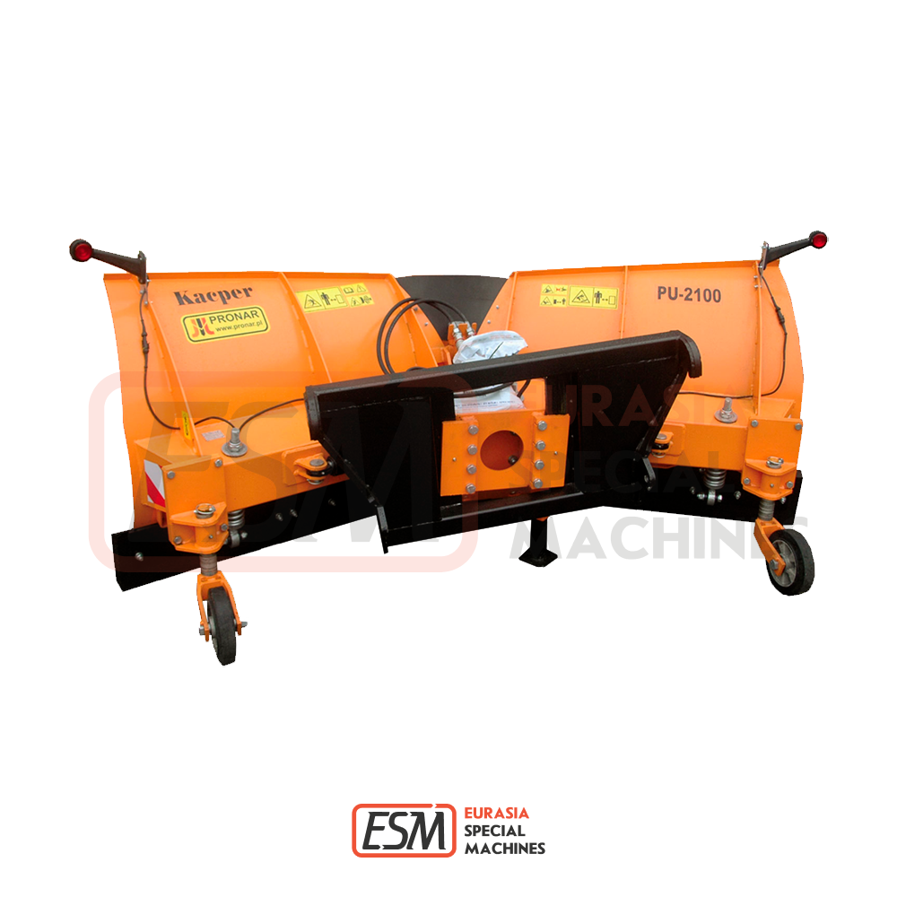Снегоотвал PRONAR Kacper PU - 2100 - предназначен для уборки снега с поверхности дорог, площадей, стоянок и любых других твердых поверхностей таких как: асфальт, бетонные блоки, брусчатки, бетон. Рабочим элементом являются правая и левая часть снегоотвала с гидравлическим управлением и возможностью установки его в четырёх рабочих позициях. Cнегоотвал оборудован съёмными, гибкими (опционально – жёсткими) нижними ножами, пружинное крепление которое делает снегоотвал стойким к ударам и предохраняет от поломок на неровностях очищаемой поверхности.